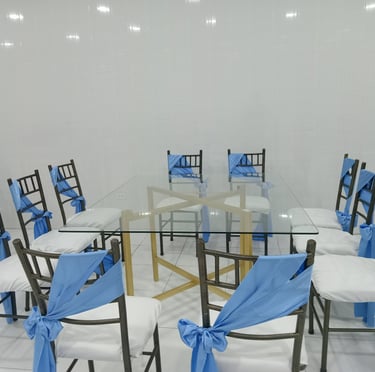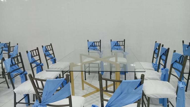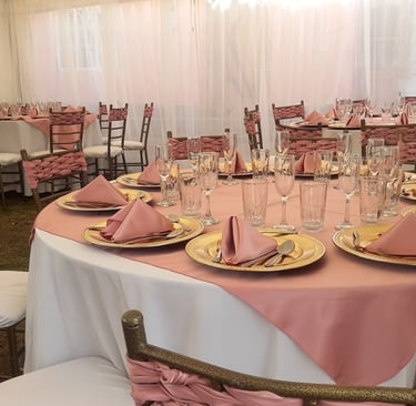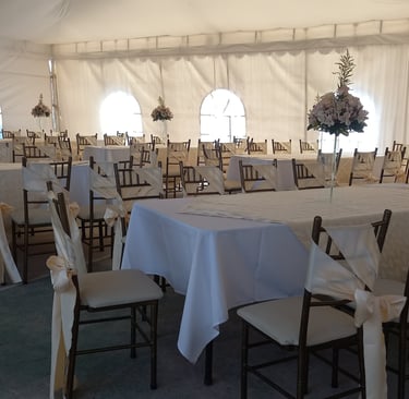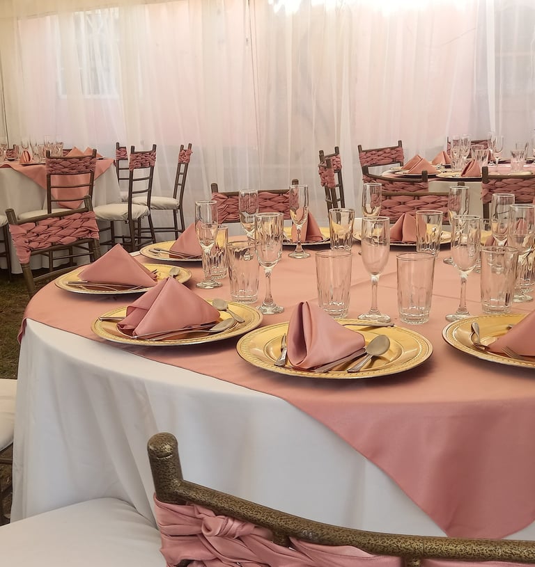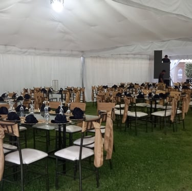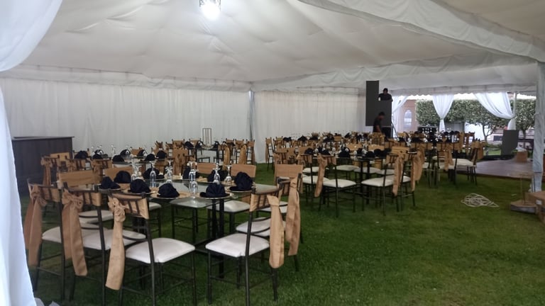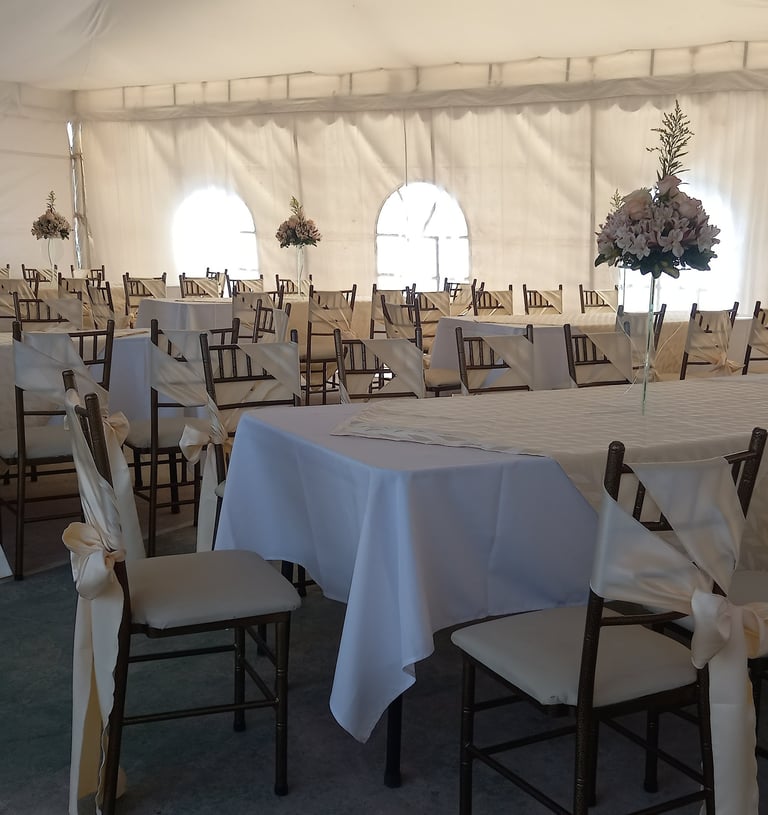 Alquiler de carpas, mesas, sillas, mantelería, cristalería.